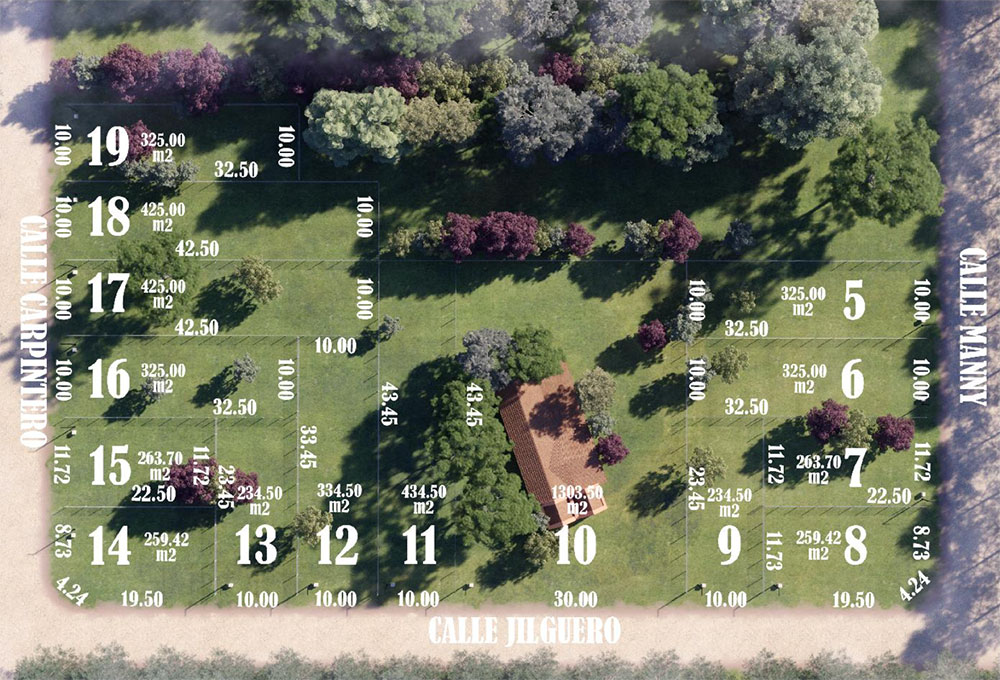 15 lotes desde 259 m² a 1303 m², perfectos para tu próximo hogar.
